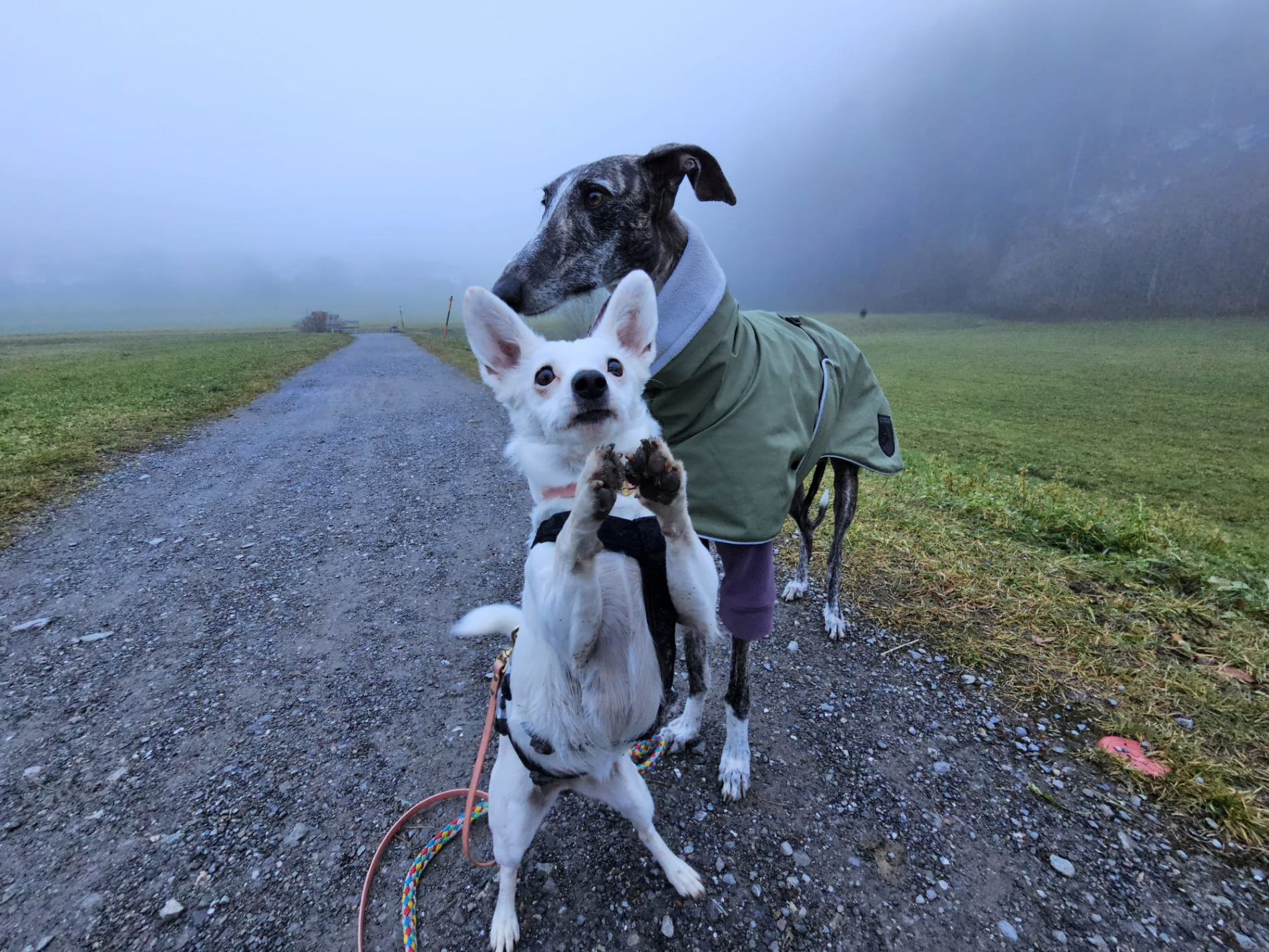Tama läuft brav an der Leine und kann – in Hundegesellschaft– problemlos alleine bleiben, was sie auf ihrer Pflegestelle bereits in kürzester Zeit gelernt hat.