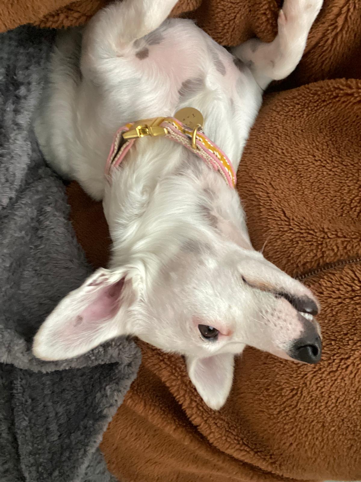 Tama ist ein kleine Mischlingshündin und wird im Oktober 5 Jahre jung. Sie bringt Lebensfreude, Energie und gaaanz viel Herz mit. Zuhause hat sie gelernt, zur Ruhe zu kommen – am liebsten kuschelt sie mit ihren Menschen oder schläft unter der Decke. Nähe ist ihr besonders wichtig. Neue Menschen schaut sie sich vorsichtig an, doch wenn sie merkt, dass man es gut mit ihr meint, liebt sie Streicheleinheiten umso mehr. Mit älteren Kindern kommt Tama gut zurecht, solange sie respektvoll mit ihr umgehen.