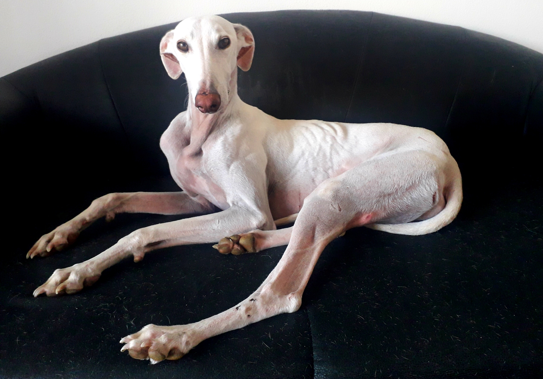 Im Pflegezuhause ist Alibaba ein lustiger, fröhlicher und neugieriger Galgo geworden – der zum Teil schon seine Grenzen auslotet. Wobei er auf nur einmal „Aus“ sagen, sofort reagiert. Nach wie vor liebt er es unter der Decke zu liegen und von Pflegefrauchen gekrault zu werden.