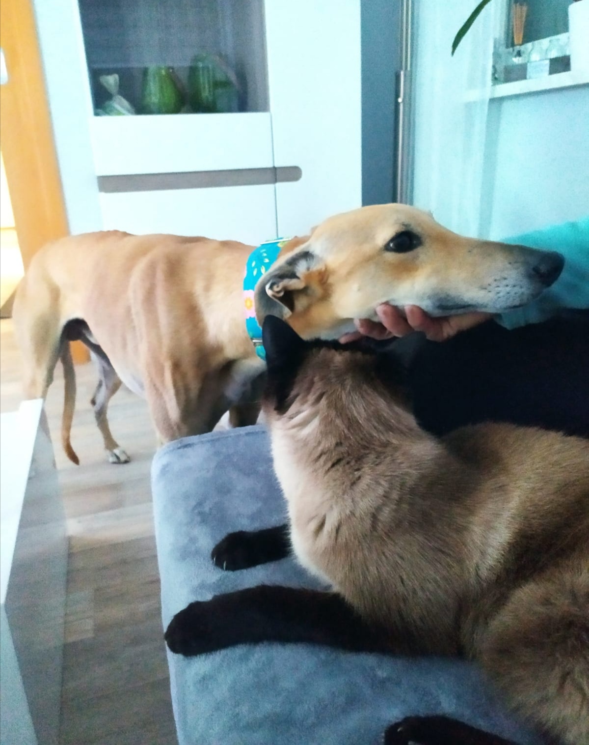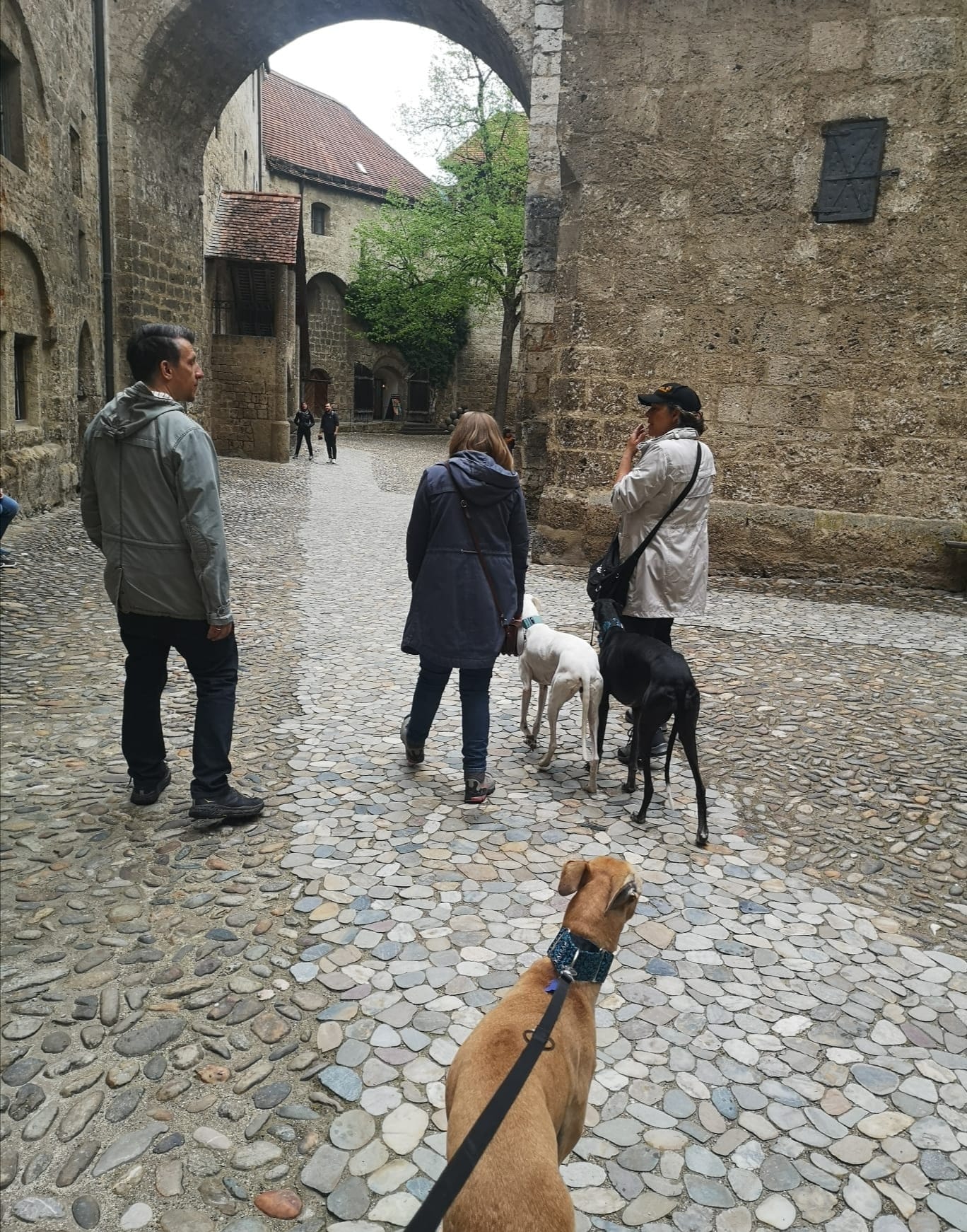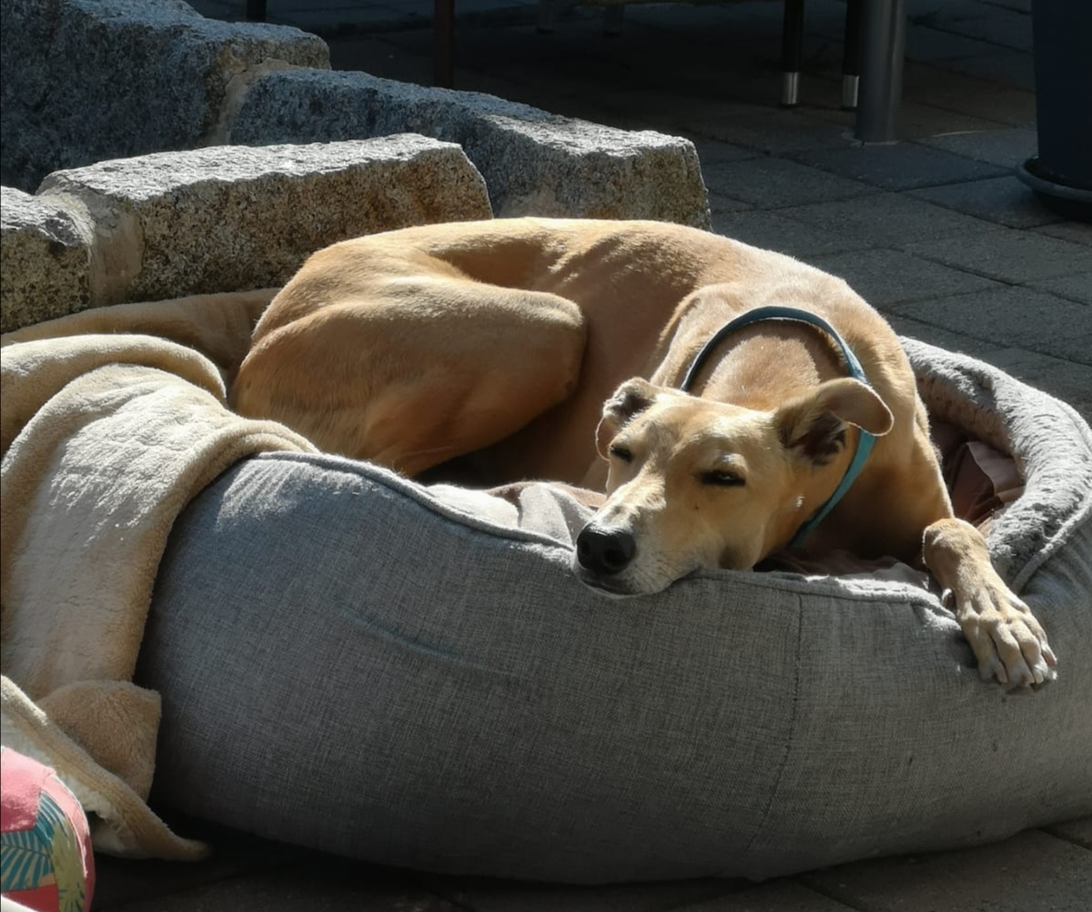 Kaleo ist der ideale Wohnmobilgalgo. Burgen besichtigen mit steilen Treppen, Schiffahrt geniessen, Skywalk begehen, Streetfood Festival durch die Nase ziehen - er geht tapfer überall mit. Neue Menschen kennen lernen, viele neue Hundebegegnungen - Kaleo ist trotz seiner Jugend nicht stürmisch. Sein Temperament zeigt er in der Hundewiese wenn er in einem atemberaubendem Tempo daherbrettert. Kaleo ist kein Einzelhund - er braucht unbedingt einen zweiten Galgo als Partner. Egal ob Männchen oder Weibchen - er versteht sich mit allen. Der Partner darf aber nicht dominant sein - Kaleo ist eher unterwürfig und wird im Rennspiel sonst als Hase auserkoren. Stubenrein, eigene Hauskatze, mit Hundepartner alleine bleiben, Cafebesuch - kein Problem. Die Kinder sollten aber nicht zu klein sein - eher im Teenageralter. Kleine Kinder sind ihm eher unheimlich. Er ist sehr gelehrig und lernt unheimlich schnell. Aber Achtung - ein Meisterdieb im Klauen von Essen.