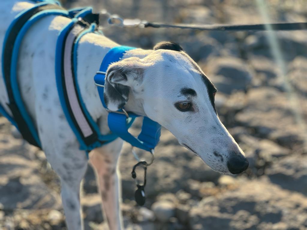 Kareem ist ein ganz toller und lustiger Galgo. Allerdings braucht er viel Zeit um sich zu binden. Daher ist bei ihm sehr viel Geduld gefragt.