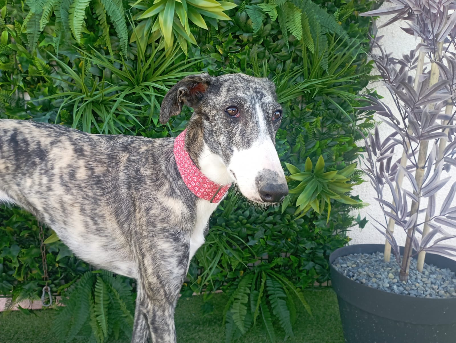 Biri ist eine ruhige und liebe Galga. Am ersten Tag schien sie unsicherer zu sein, aber sie hat sich sehr schnell an das Tierheim gewöhnt, und jetzt verhält sie sich wie ein ruhiger und entspannter Windhund. Wenn sich jemand ihrem Zwinger nähert, steht sie freundlich auf, um Hallo zu sagen, ohne Angst. Mit anderen Hunden ist sie brav, gesellig und unterwürfig, nicht dominant. Beim Katzentest wirkt sie entspannt und ruhig.