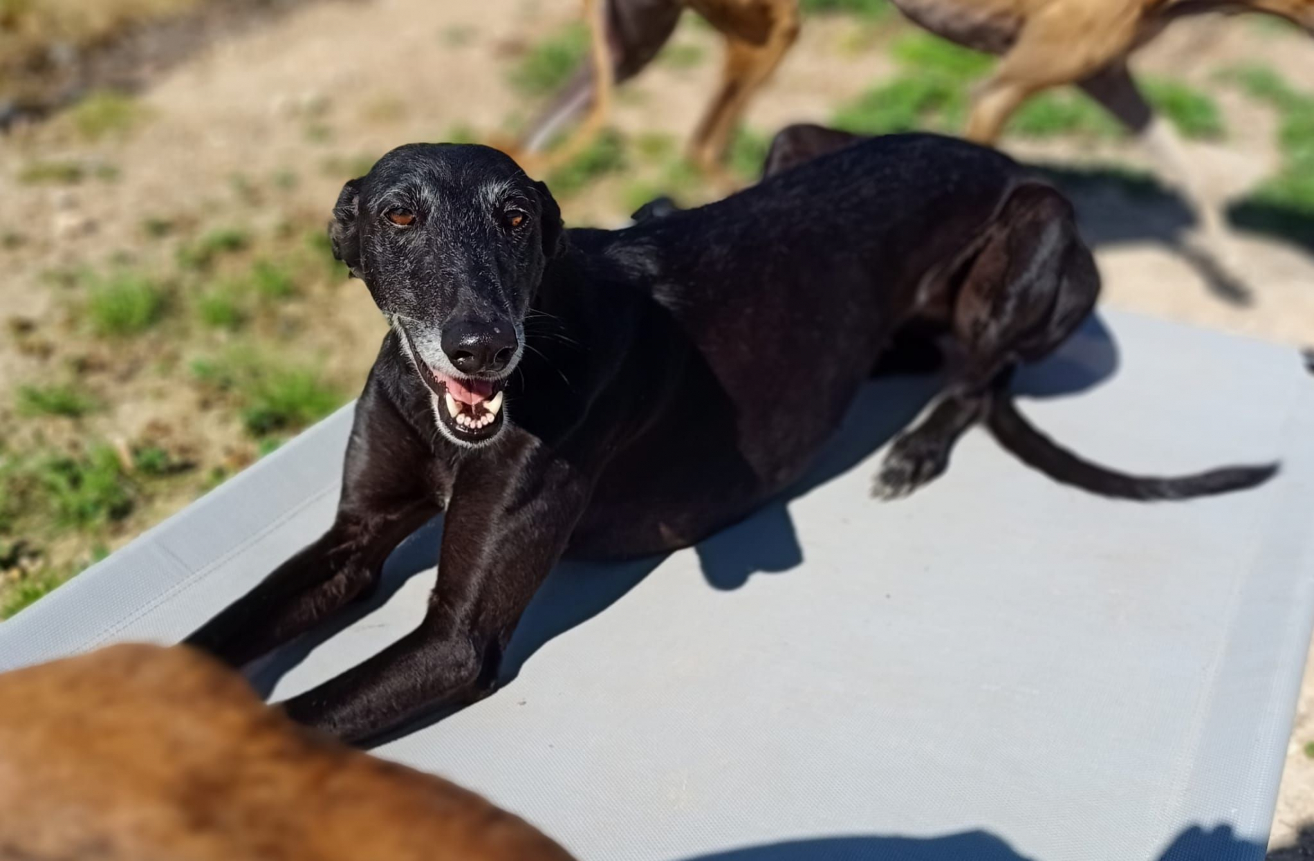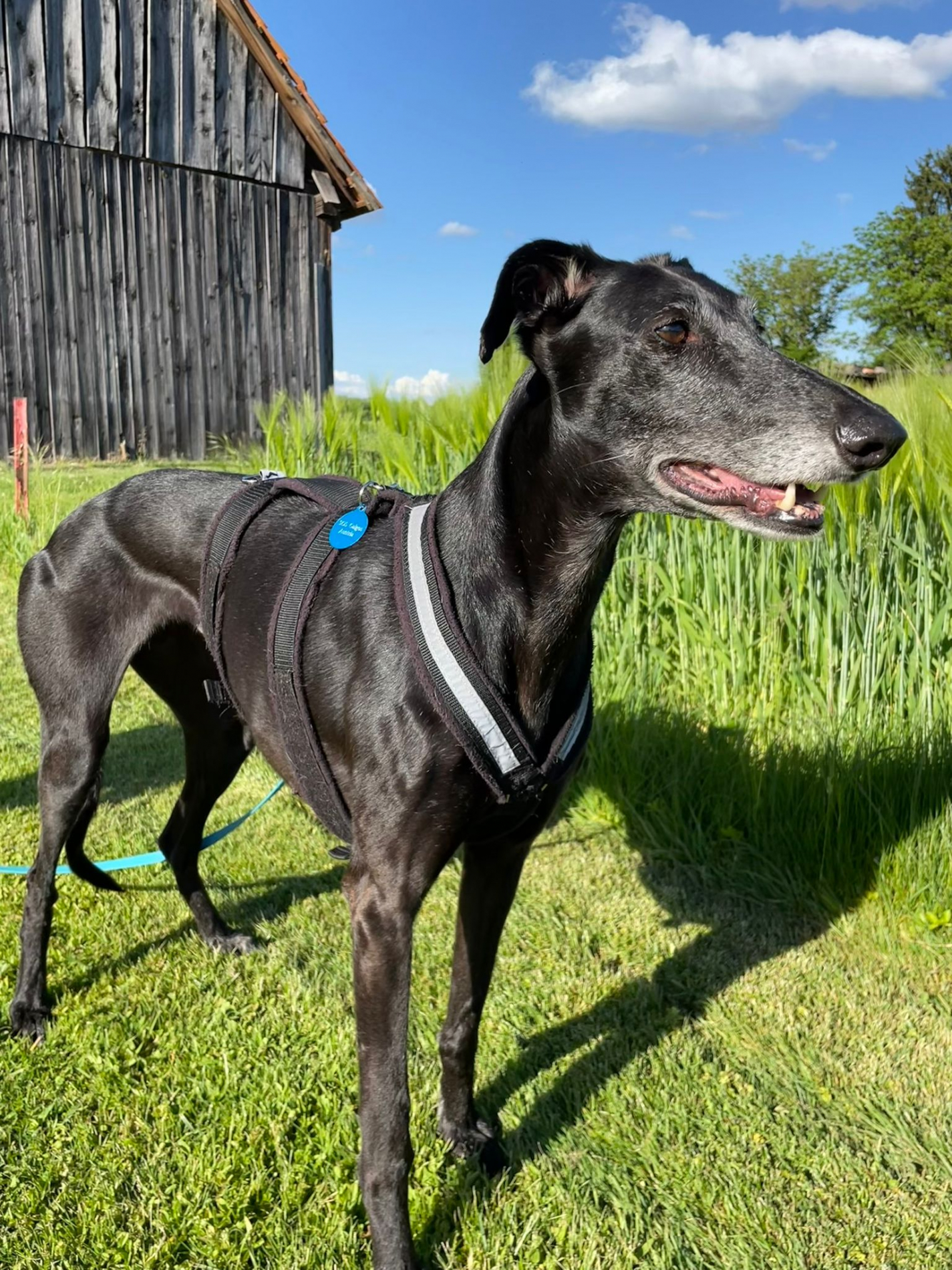 Kayli liebt Hunde und Menschen. In ihrem neuen Zuhause sollte auf jeden Fall zumindest schon ein Galgo leben. Mit meinem 10jährigen Sohn hat sie große Freude! Sie läuft super brav an der Leine, zieht nicht und geht total gerne spazieren. Kayli hat keine Angst vor Autos, Lastwagen, Traktoren oder Ähnlichem und sie liebt das Autofahren. Im Garten alleine oder mit den anderen Hunden Zoomis zu machen ist eine große Leidenschaft von ihr. Kayli ist – typisch Spanierin – eine Sonnenanbeterin und pendelt an schönen Tagen hochfrequent zwischen Couch und Wiese. Aus diesem Grund ist ein gut gesicherter Garten für sie ganz wichtig! Und auch ein kurzes Alleinbleiben mit anderen Hunden ist kein Problem.