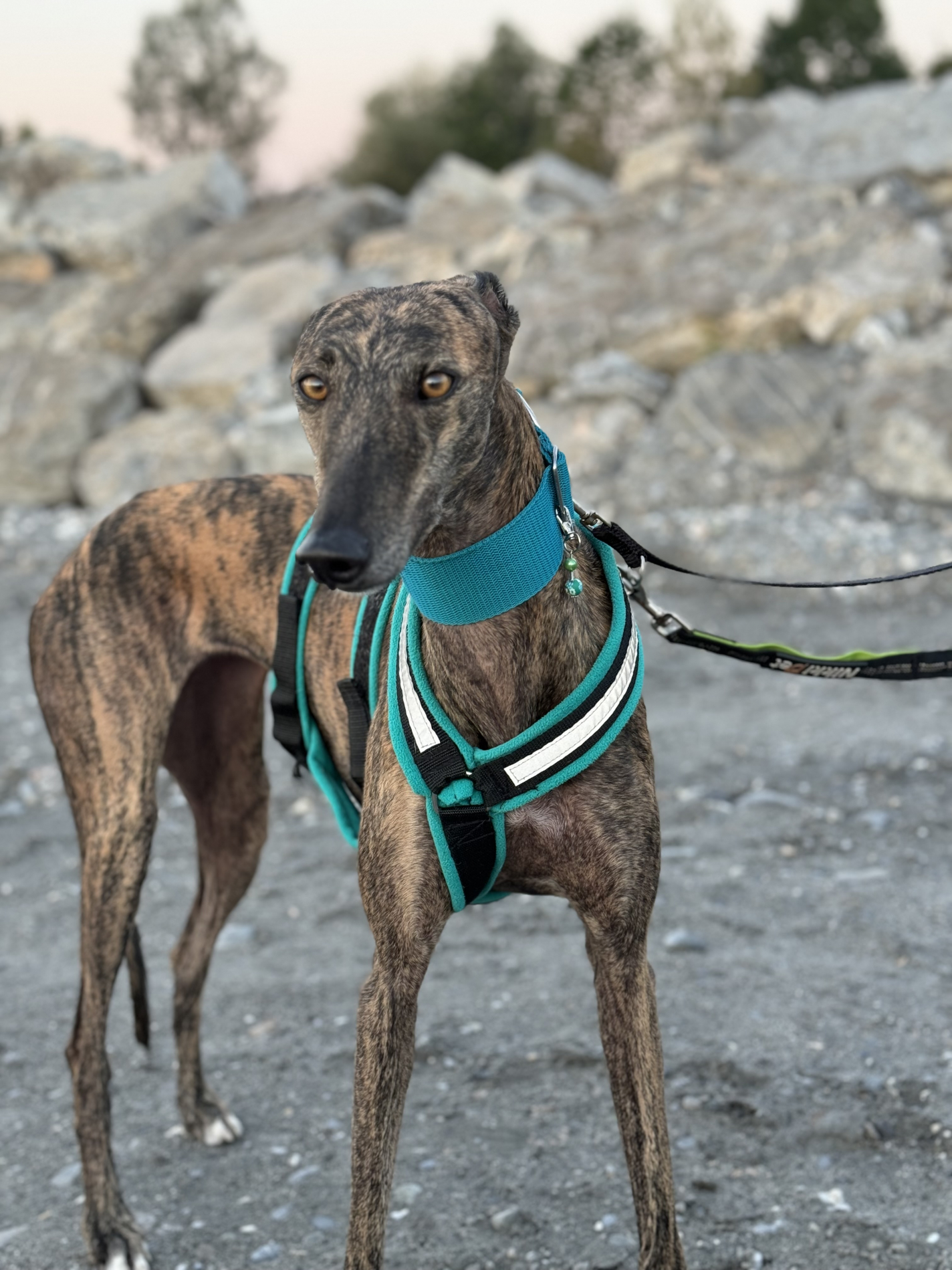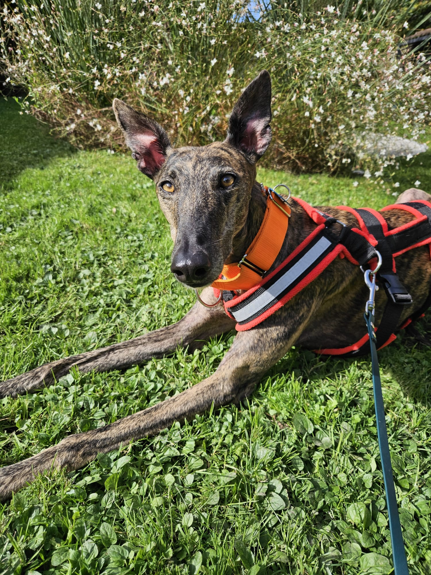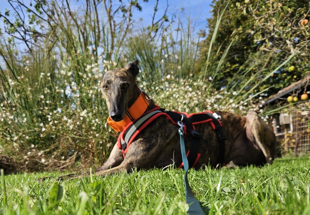 Fabia ist eine ruhige Galga. Sie ist in neuen Situationen noch zurückhaltend und vorsichtig. Jedoch lässt sie sich mit Geduld und guten Leckerlies überzeugen. Aufdringliche Hunde mag sie nicht so gern, aber sonst kommt sie gut mit anderen Hunden klar. Sie läuft sehr fein an der Leine und orientiert sich gut am Menschen. Sie liebt Spaziergänge vor allem im Wald. Fabia ist eine echte Schnüfflerin. Im Haus und im Garten fühlt sie sich schon sehr wohl. Sie liebt ihren Platz auf der Couch, den sie gleich am ersten Tag für sich gefunden hat. Autofahren ist noch nicht ihre Lieblingsbeschäftigung, aber sie hat sich schon recht gut daran gewöhnt. Fabia ist von Anfang an stubenrein. Sie wird jeden Tag etwas offener und es ist eine Freude ihr dabei zuzusehen.