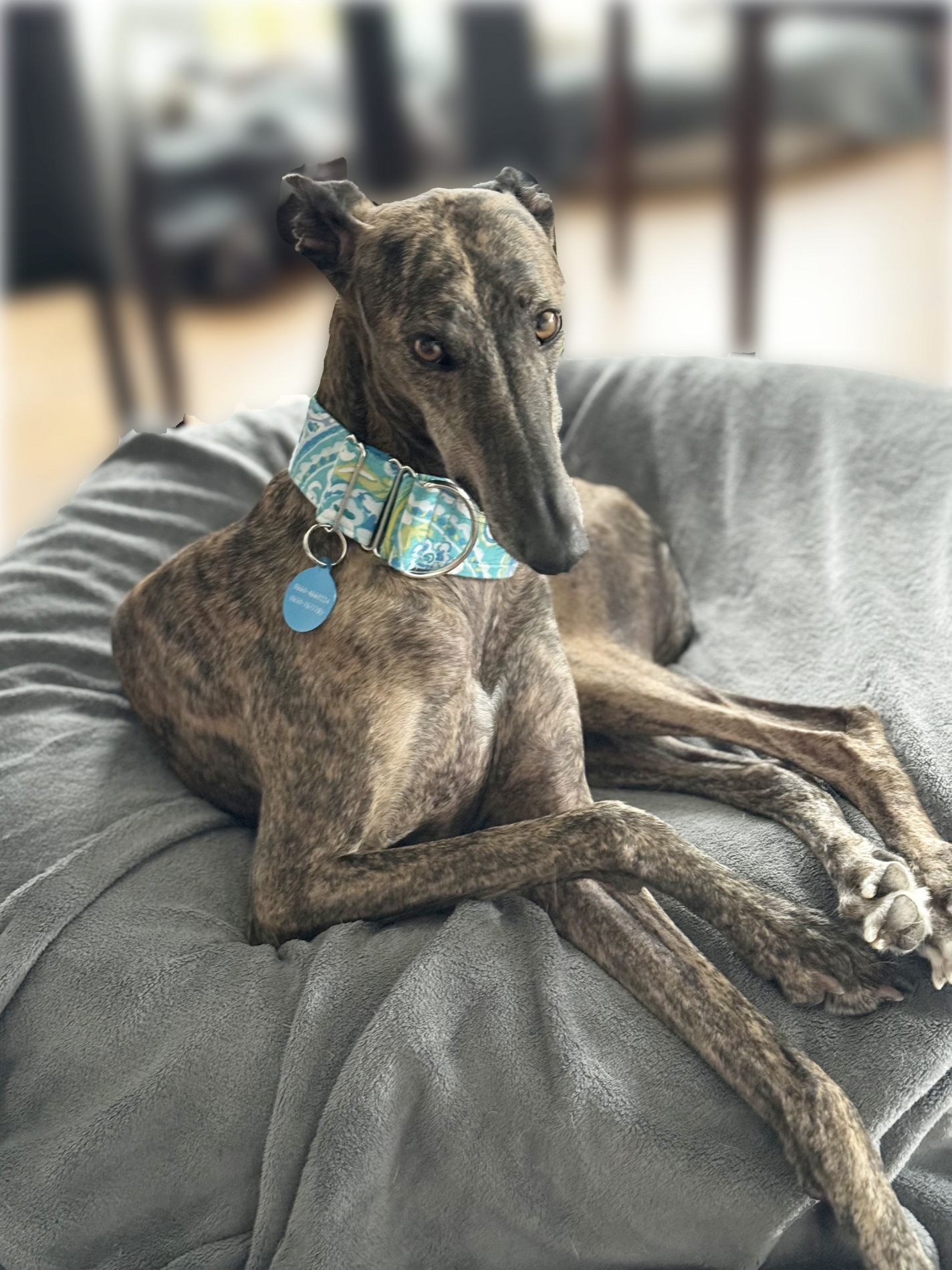 Fabia ist jetzt gut 3 Monate bei mir und hat sich an den Tagesplan super gewöhnt. Im gesicherten Freilauf rennt sie mit ihren Hundefreunden gerne ein paar Runden und kommt dann brav wieder zurück. Ihr Jagdtrieb hält sich derzeit sehr in Grenzen- sie schaut nur und lässt sich gut ablenken. Autofahren ist mittlerweile kein Problem mehr. Man merkt Fabia kaum im Alltag. Sie ist eine sehr brave Begleiterin, kann aber auch gut alleine zuhause bleiben, sogar ohne Hundekumpel. Beim Besuchen von Familien und Freunden benimmt sie sich vorbildlich und bleibt auf ihrem Platz liegen, bis es wieder nach Hause geht.