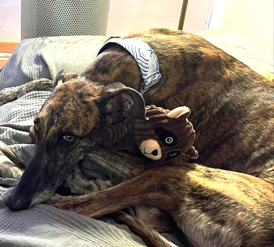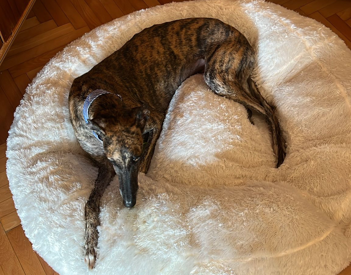 Sehr nett, liebevoll, kontaktfreudig, ruhig und furchtlos. Typischer fröhlicher und liebevoller Windhund. Sie ist eine sehr unkomplizierte Hündin, sie passt sich gut an das Leben alleine oder mit anderen Hunden an, sie ist nicht dominant.
