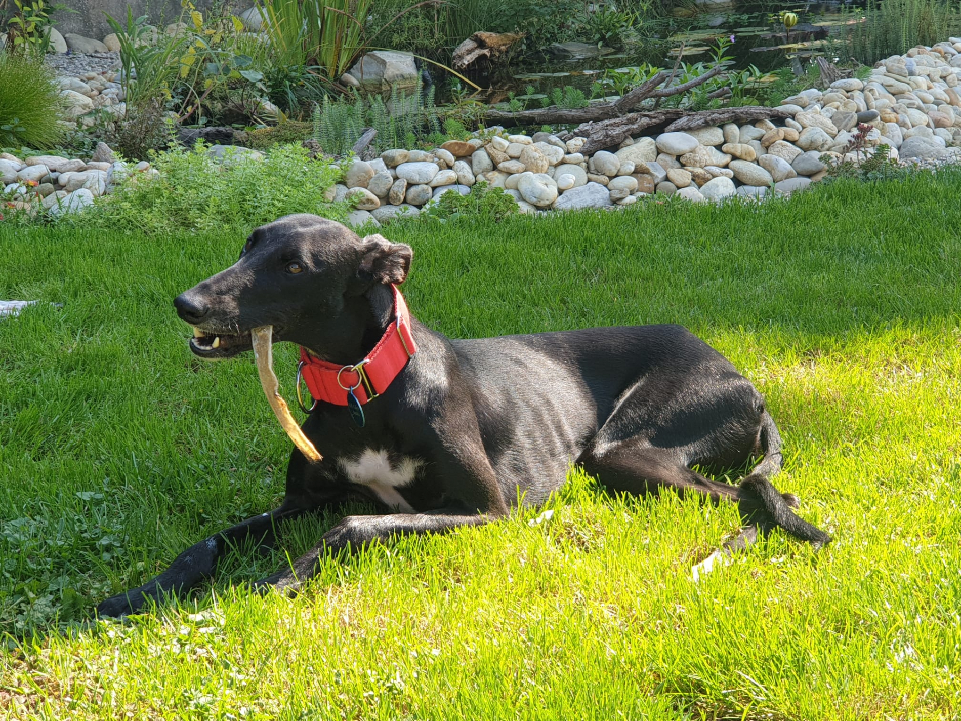 Anfangs war sie ein schüchterner Windhund, sie hatte weder Angst noch Panik, aber in den ersten Tagen verhielt sie sich völlig anders als jetzt. Sie wirkte schüchterner, es fiel ihr schwer, an der Leine zu laufen und sie spielte nicht, aber schon nach wenigen Tagen im Tierheim wirkt sie völlig anders und scheint auch Fremden gegenüber, ein sehr fröhlicher Hund zu sein.