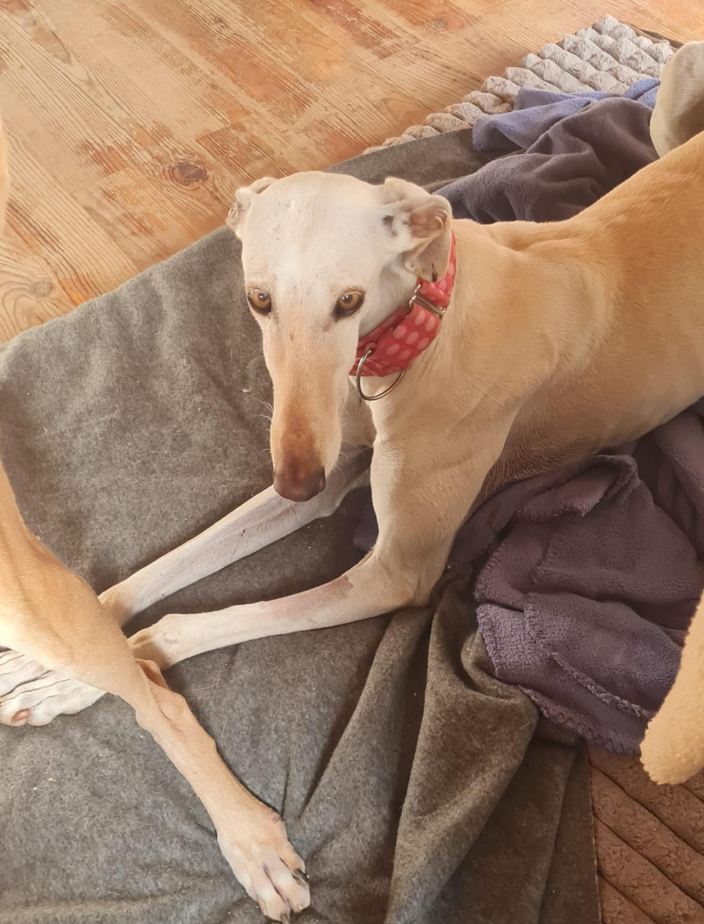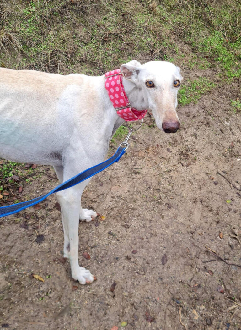 Unsere Schneewittchen trägt eine besondere Ruhe in sich, eine stille Eleganz, wie man sie nur bei Galgos findet, die viel gesehen und trotzdem den Zauber nicht verloren haben. In ihrer Gegenwart wird alles weicher: die Stimme, die Gedanken, die Stimmung im Raum.