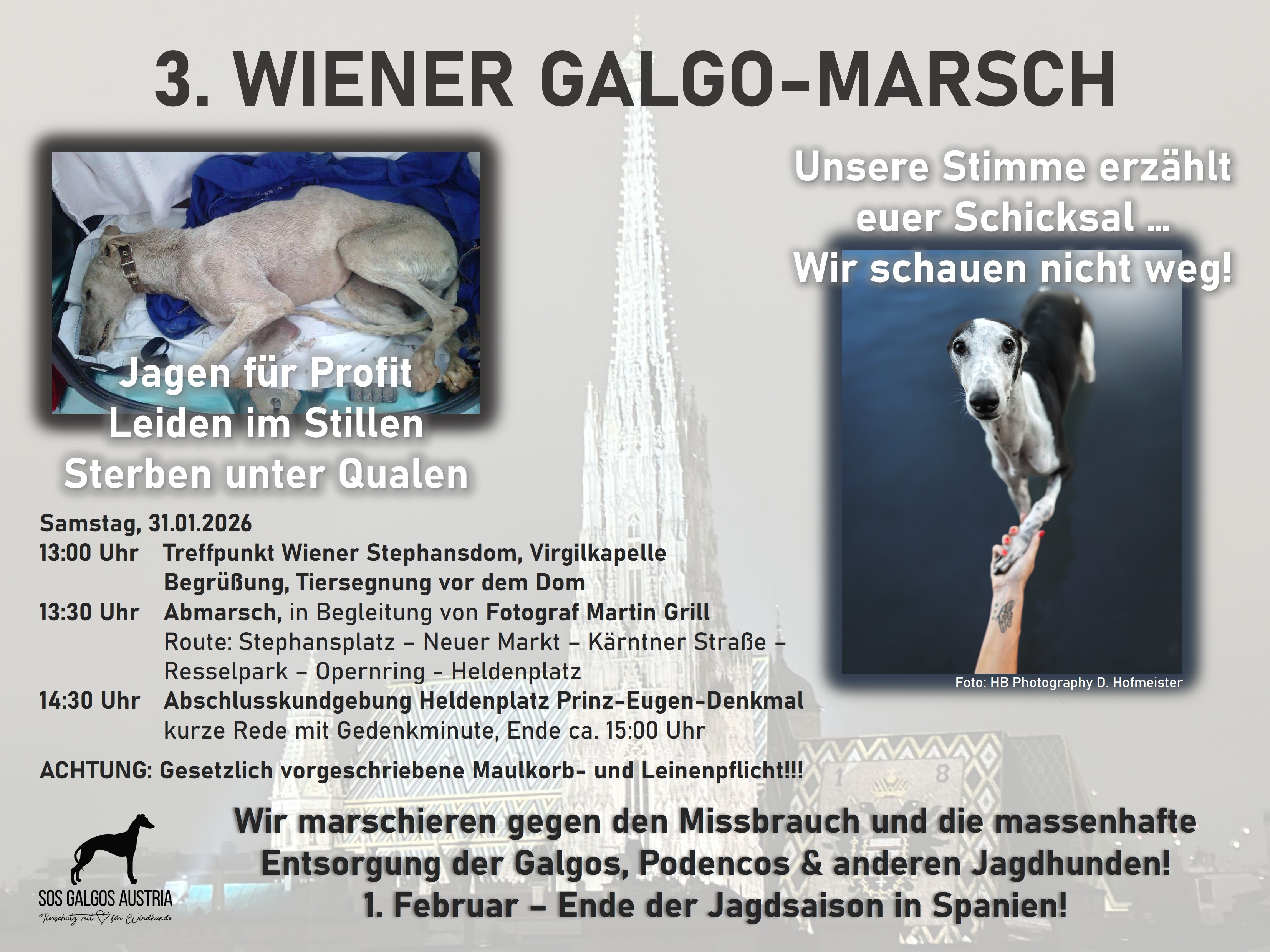 Zehntausende Galgos und Podencos werden am Ende der Jagdsaison – der 1. Februar - ihrem traurigen Schicksal überlassen! Und jedes Jahr quellen die spanischen Tierheime über von aufgefundenen, abgegebenen zum Teil schwer verletzten, traumatisierten Windhunden. Dieses Jahr ist es so schlimm, dass einige Tierheime keine Tiere mehr aufnehmen können – sie sind übervoll!!!! Sie sind am Limit mit Platz, Zeit und kämpfen so oder so immer mit Geldnöten. Was diese Tierschützer vor Ort erleben ist grausam – sie kämpfen an vorderster Front um die Tiere. Das Leid, den Schmerz der Tiere - immer in dem Wissen – sie kämpfen gegen Windmühlen. Ihr einziger Rückhalt ist das Wissen – wir alle zusammen versuchen ihnen so gut es geht mit Spenden aller Art den Rücken zu stärken. Andere Menschen darauf aufmerksam machen und die Regierung in Spanien mit Protestmärschen zum Handeln zu bewegen.