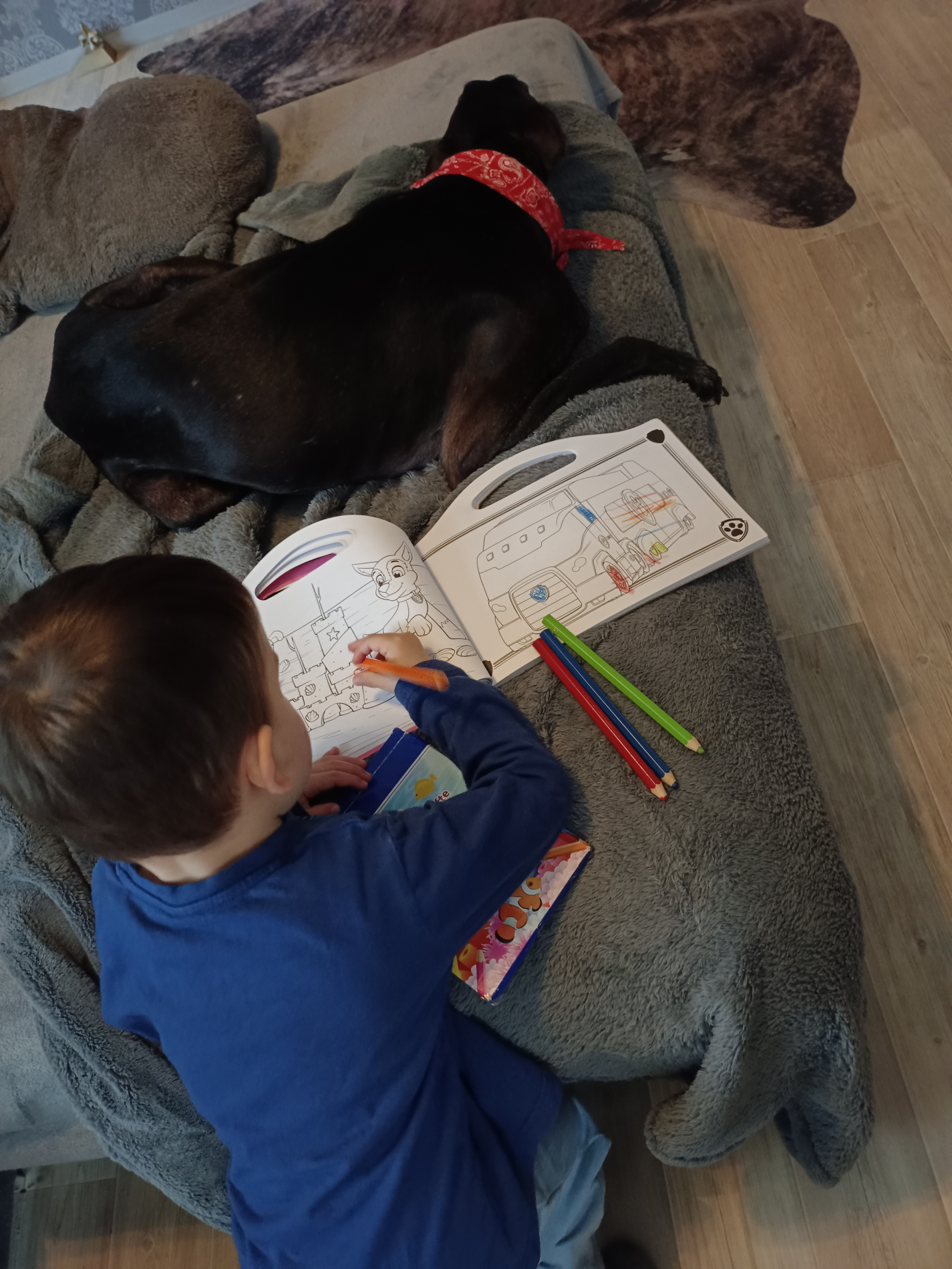 Im Haus ist er sehr brav und ein unheimlicher Kuscheltiger. Fernsehabend eng an Pflegepapa gekuschelt liebt er ganz besonders. Der kleine Mann schläft die ganze Nacht durch, und wenn es regnet oder schneit würde er Galgotypisch den ganzen Tag durchschlafen. Natürlich ist er absolut stubenrein.