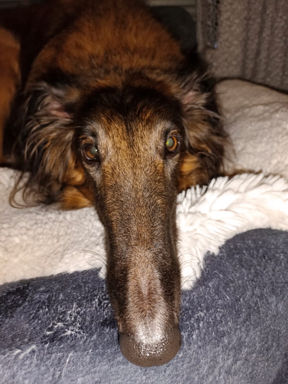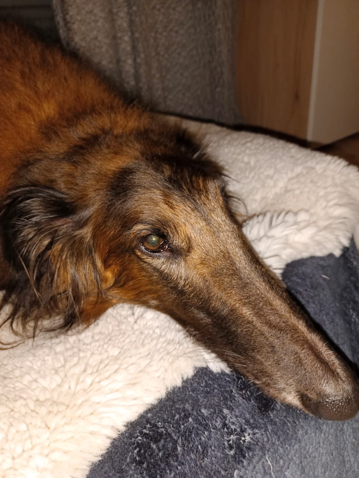 Vor gut einem Monat erreichte uns ein Notruf. Die alleinstehende Besitzerin einer vierjährigen Barsoihündin wusste nicht weiter. Sie hatte von uns erfahren und von unserem Angebot, bei der Betreuung und Vermittlung im Notfall zu helfen.