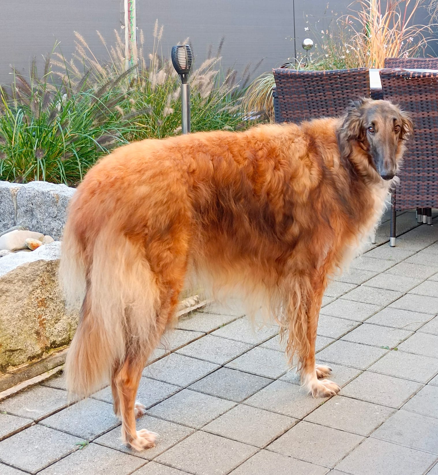 Garten oder grosse Terrasse sollte sein – im Winter möchten Barsois immer wieder mal raus – es ist ihnen in den beheizten Wohnräumen zu heiss.