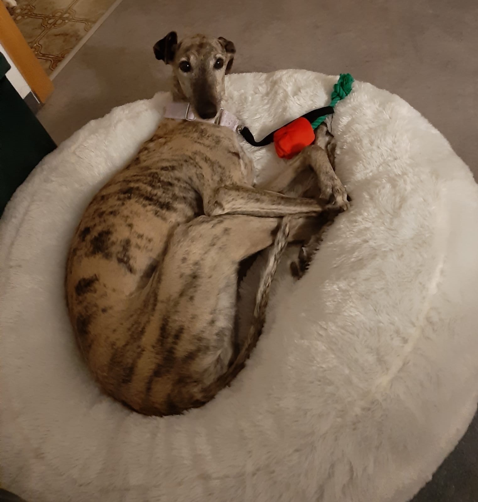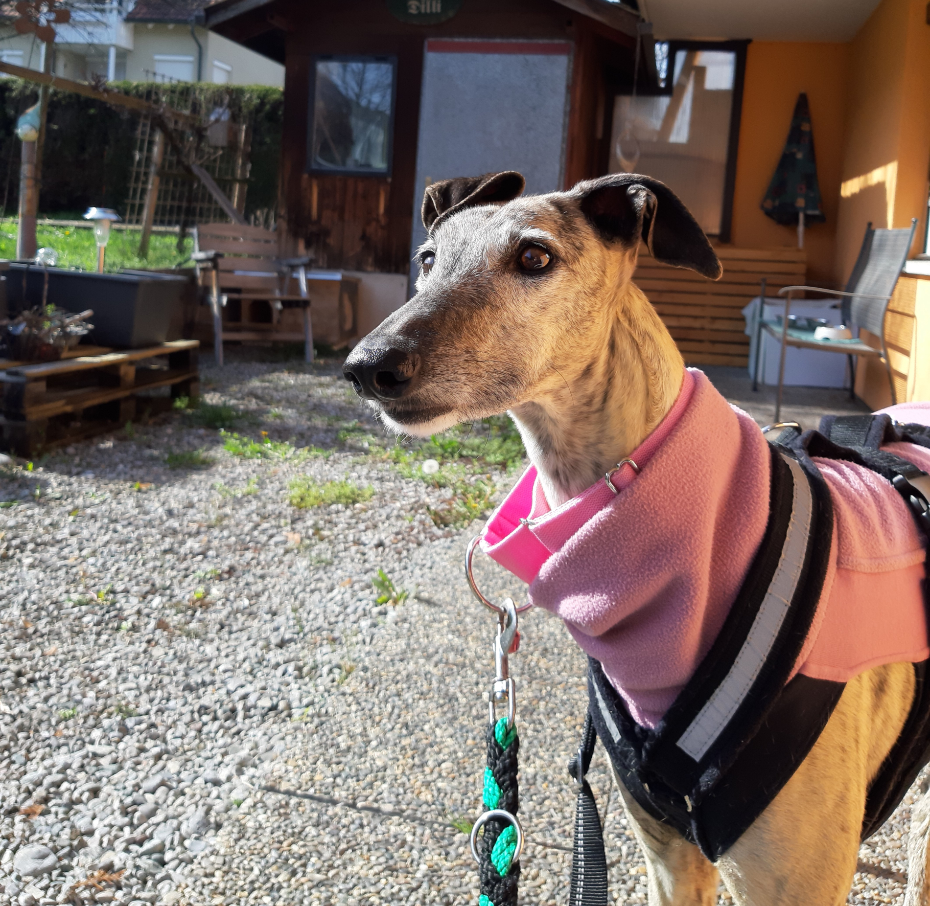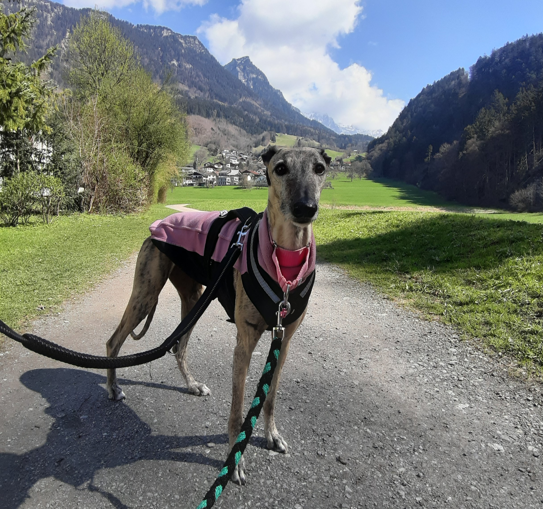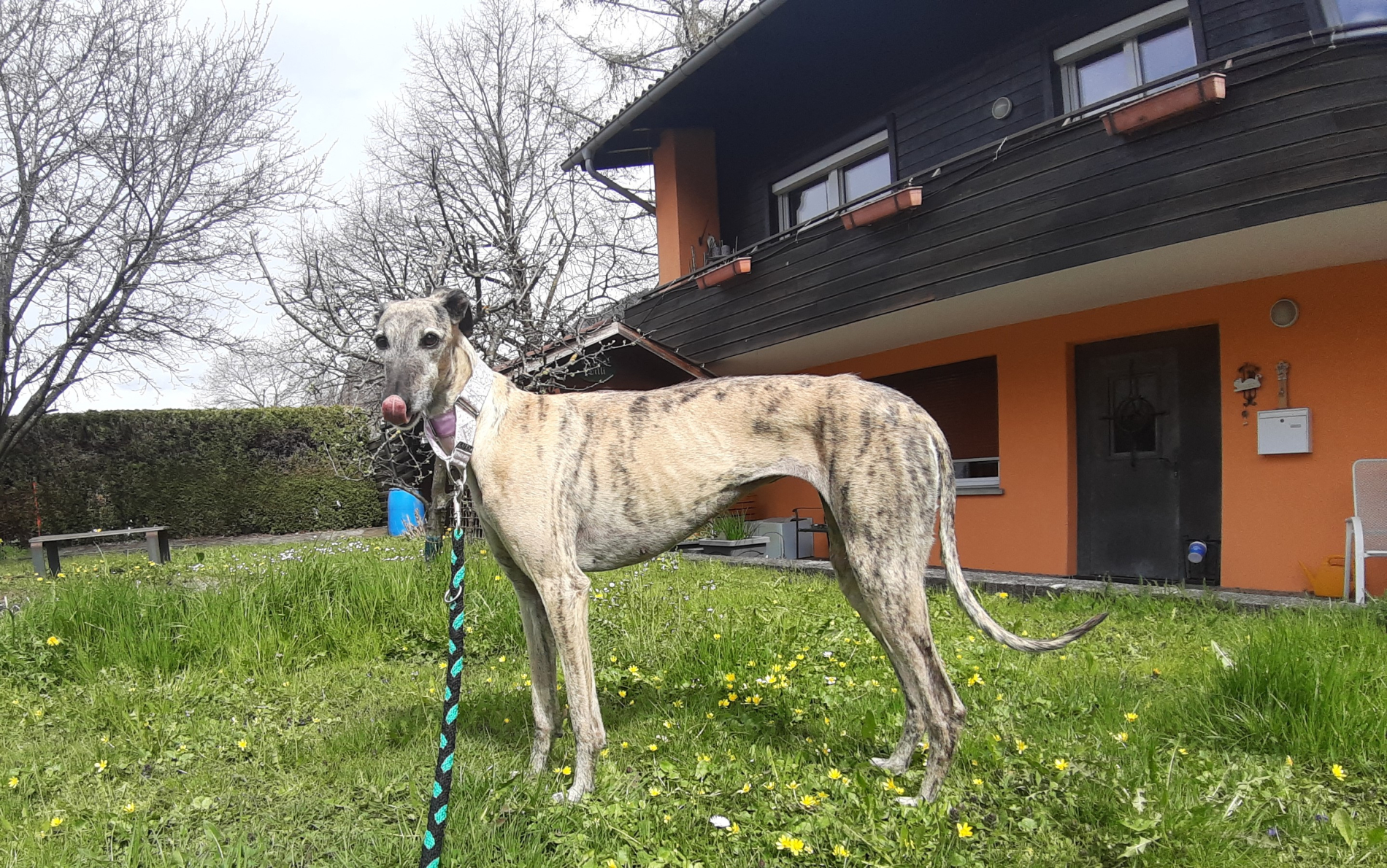 Piruleta, genannt „Letti“, ist nun seit zwei Wochen in Vorarlberg und hat sich schon super eingelebt. Sie ist gerne überall dabei und geht neue Situationen ganz entspannt an. Jeder wird von Letti freundlich und schwanzwedelnd begrüßt und auch Kinder mag sie gerne. Die hübsche Galgodame geht gerne mit zur Arbeit. Beim Spaziergang geht sie brav und aufmerksam an der Leine. Katzen findet sie schon interessant, macht aber derzeit keine großen Anstalten um ihnen nachzujagen. Piruleta ist sehr verschmust und genießt die Abende mit ihrer Pflegemama auf der Couch. Sie spielt auch schon eifrig mit ihrem Kuscheltier. Auch alleine bleiben funktioniert für ein paar Minuten schon ganz gut.