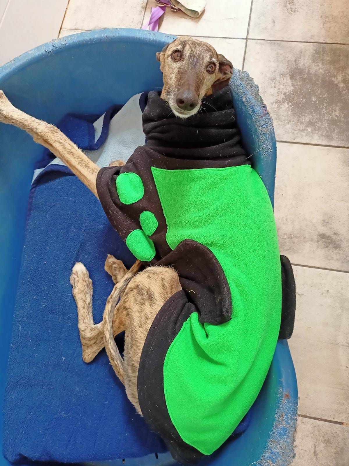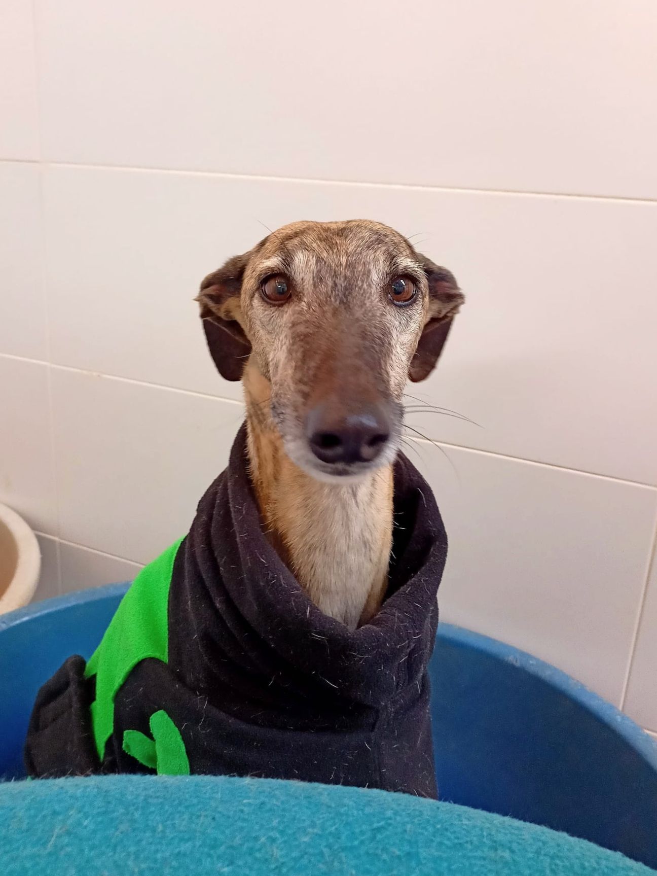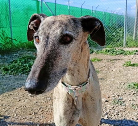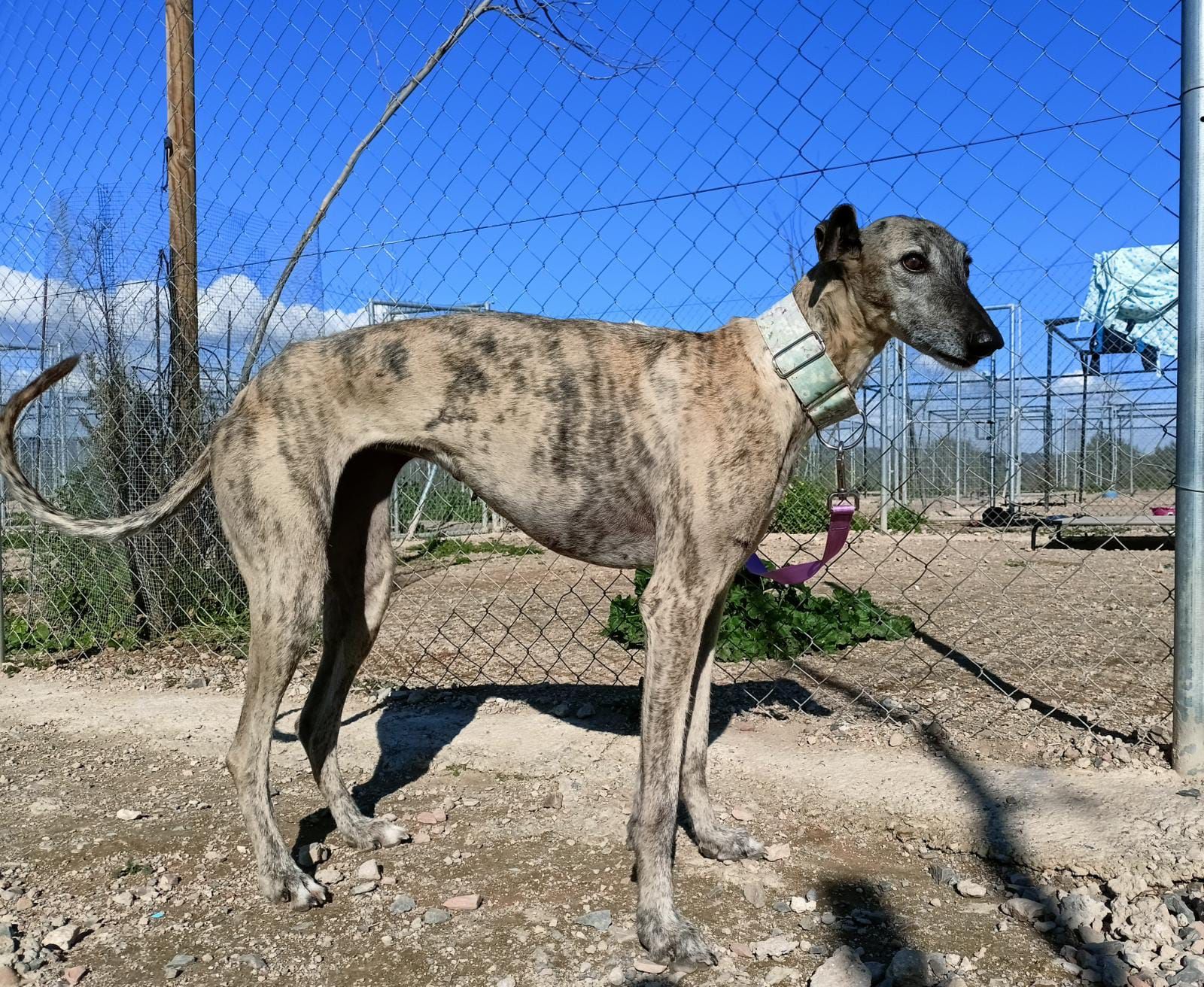Piruleta ist sehr süß, einfach, nett, edel, sehr anhänglich. Sie ist charmant, ein fröhlicher und sehr verschmuster Windhund, sie hat vor niemandem Angst. Auch wenn sie jemanden nicht kennt, holt sie sich Liebkosungen. Mit anderen Hunden ist sie sehr brav, sehr gesellig, unterwürfig, nicht dominant.