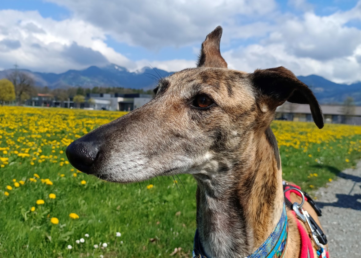 Kirana lernt sehr schnell und ist ein besonderes Sprachentalent. Den Vorarlberger Dialekt hatte sie am 2ten Tag schon verstanden. Die Kommandos «Abe» (runter), «usse» (raus) – kein Problem. «Warten» an der Küchentüre und vor dem Zebrastreifen sowie «Nein» – das alles weiss sie schon. Also wird die kluge Maus auch sehr schnell lernen, dass Besuch was Schönes ist.
