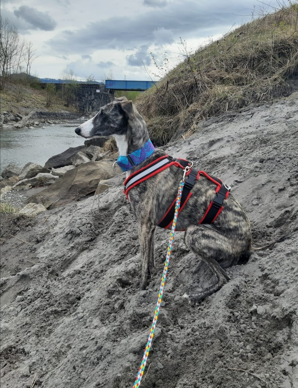 Biri fühlt sich in ihrem Zuhause auf Zeit schon recht wohl. Sie ist ruhig und brav. Sie legt ihren Kopf bei jeder Gelegenheit auf den Schoss ihrer Pflegemama um Streicheleinheiten zu bekommen. Beim Spazieren lässt sie sich leicht führen und ist interessiert an ihrer Umgebung. Bei vorbeifahrenden Autos schaut sie manchmal etwas skeptisch, bleibt aber sonst ruhig. Sobald man die Tür des Autos aufmacht, springt sie rein und legt sich auf ihren Platz. Sie ist überhaupt nicht ängstlich. Biri geht ohne Probleme über Brücken- sogar mit Gitterboden. Auch beim Restaurantbesuch ist sie gern dabei und macht es sich auf einer Decke unterm Tisch gemütlich. Sie liebt alle Menschen und begrüßt andere Hunde freundlich und lieb. Die verschriebenen Augentropfen lässt sie sich problemlos eintropfen. Zuhause sowie auf der Arbeit benimmt sie sich vorbildlich. Sie ist von Anfang an stubenrein und meldet sich sogar schon wenn sie raus muss. Sie spielt gerne im Garten mit den anderen Hunden. Biri spielt zwar ein bisschen gröber aber mit gleich großen Hunden ist das kein Problem. Das Alleine bleiben wird auch schon trainiert und klappt schon ganz gut. Sie taut immer mehr auf und es ist eine Freude ihr dabei zu zusehen.