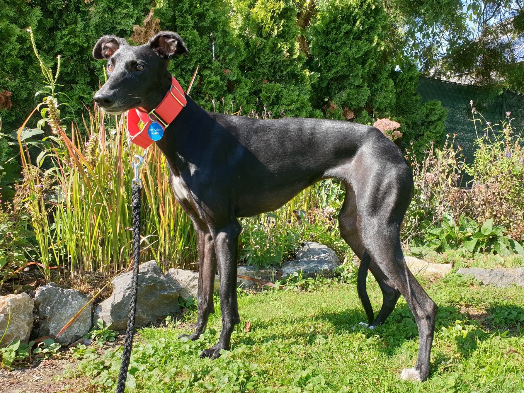 Anfangs war sie ein schüchterner Windhund, sie hatte weder Angst noch Panik, aber in den ersten Tagen verhielt sie sich völlig anders als jetzt. Sie wirkte schüchterner, es fiel ihr schwer, an der Leine zu laufen und sie spielte nicht, aber schon nach wenigen Tagen im Tierheim wirkt sie völlig anders und scheint auch Fremden gegenüber, ein sehr fröhlicher Hund zu sein.