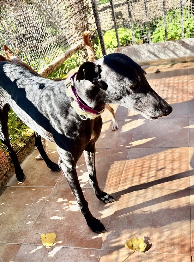Ihren Zwinger teilt sich Peque sehr harmonisch mit Galgos und Podencos, sucht niemals Streit und ist gerne Teil der Gruppe. Sobald es raus in den Freilauf geht ist Peque ganz vorne dabei! Sie kann ein richtiger Quatschkopf sein, ist verspielt und fordert ihre Fellfreunde gerne zum Flitzen auf. Ihr neues Zuhause sollte über einen sicher eingezäunten Garten verfügen und da das Herumtoben alleine nicht so viel Spaß macht wünscht sich Peque einen tierischen Lebensbegleiter. Das muss nicht zwingend ein Windhund sein, aber bitte auch keine Katze, denn die würde Peque scheuchen